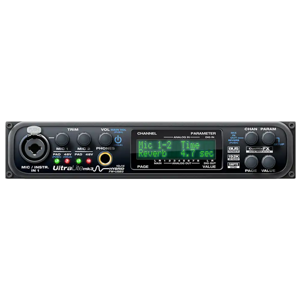 The MOTU ULTRALITE MKIII is a compact USB/FireWire audio interface, offering high-quality sound and extensive I/O options. With its rugged design and advanced DSP effects, it is ideal for both mobile recording and home studio setups.